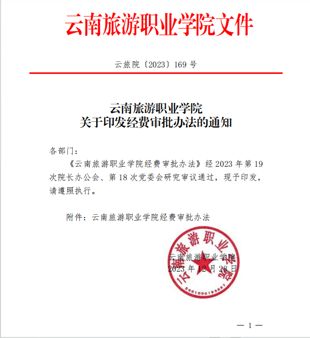 云旅院〔2023〕169号bevictor伟德国际1946官网关于印发经费审批办法的通知