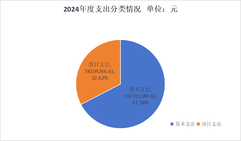 bevictor伟德国际1946官网2024年度支出合计239415656.03元。其中:基本支出161311389.42元,占总支出的67.38%;项目支出78104266.61元,占总支出的32.62%;无上缴上级支出;无经营支出;无对附属单位补助支出。
