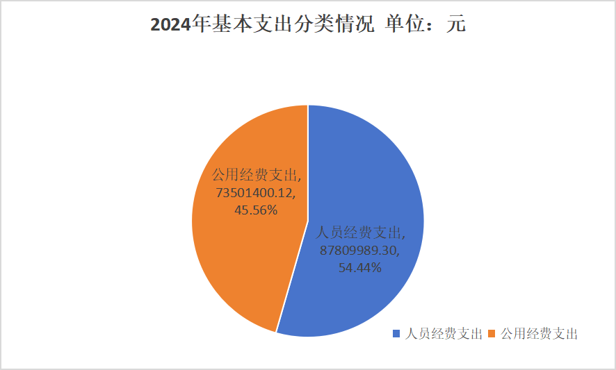 2024年度用于保障bevictor伟德国际1946官网机构正常运转的日常支出161311389.42元。其中:基本工资、津贴补贴等人员经费支出87809989.30元,占基本支出的54.44%;办公费、印刷费、水电费、办公设备购置等公用经费73501400.12元,占基本支出的45.56%。