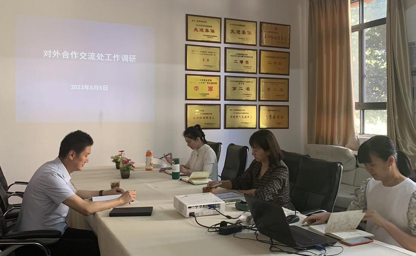 2023年5月5日上午,bevictor伟德国际1946官网蔡冰校长到对外合作交流处开展了工作调研。