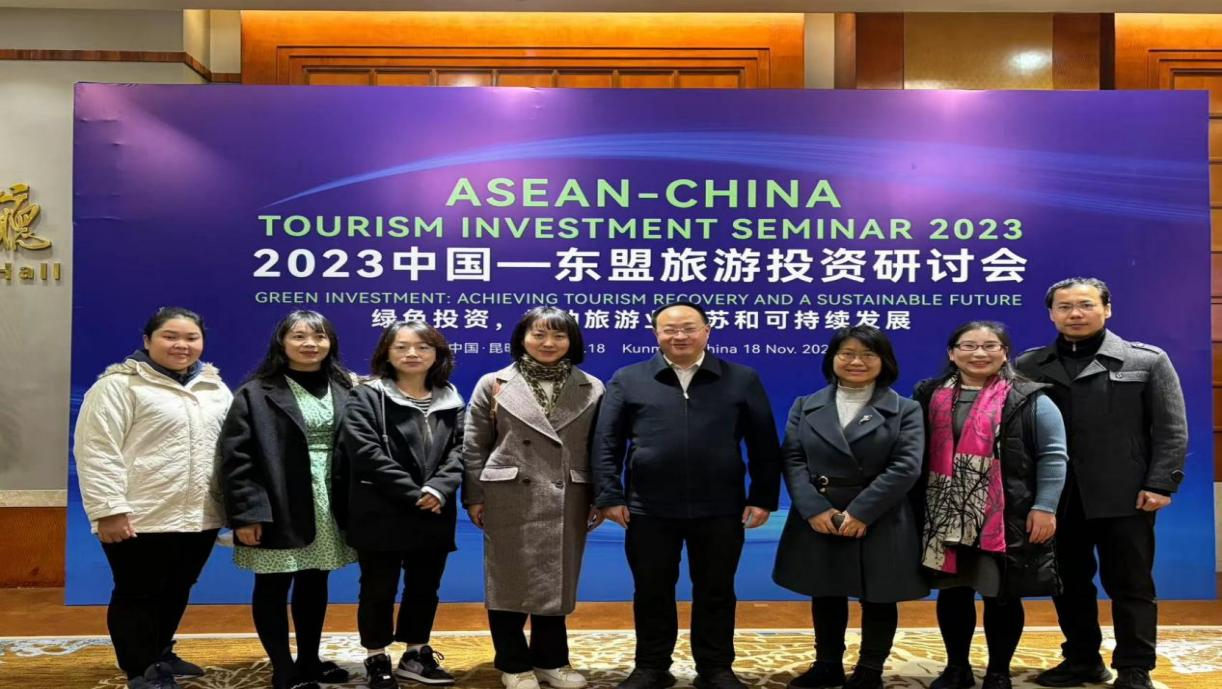 11月18日,对外合作交流处组织外语学院和文化艺术学院的老师参加“中老铁路国际文化旅游经济带建设”研讨会。由符继红副院长带队、对外合作交流处李敏处长、外语学院师生代表出席“2023中国—东盟旅游投资”研讨会。