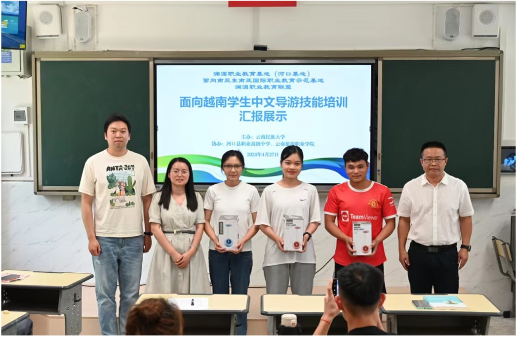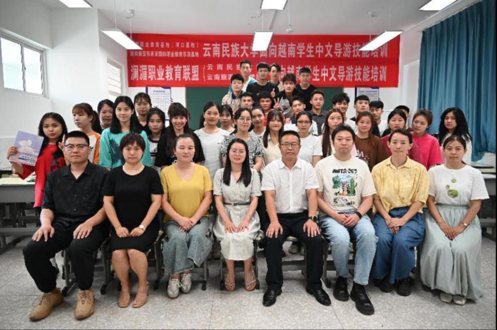 4月24日至26日,云南民族大学澜湄国际职业学院成功举办了澜湄职业教育基地(河口基地)面向越南学生中文导游技能培训。伟德作为澜湄职业教育联盟成员单位,按照培训要求和内容,选派旅游管理学院专业老师赴河口澜湄职业教育河口基地进行培训,共有35名越南籍学生参加。