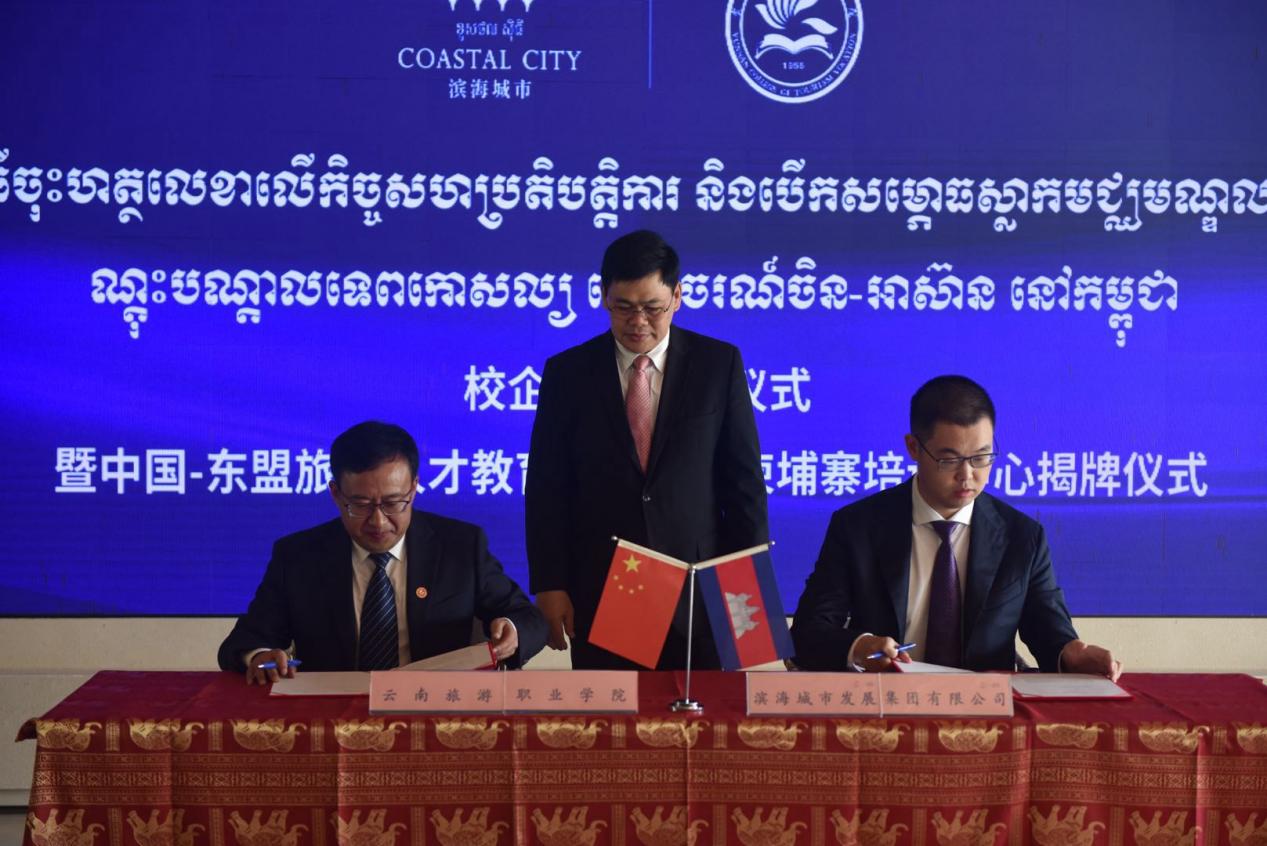 柬埔寨教育、青年和体育部国务秘书H.E.OM ROMNY见证,学校与滨海城市发展集团签订协议
