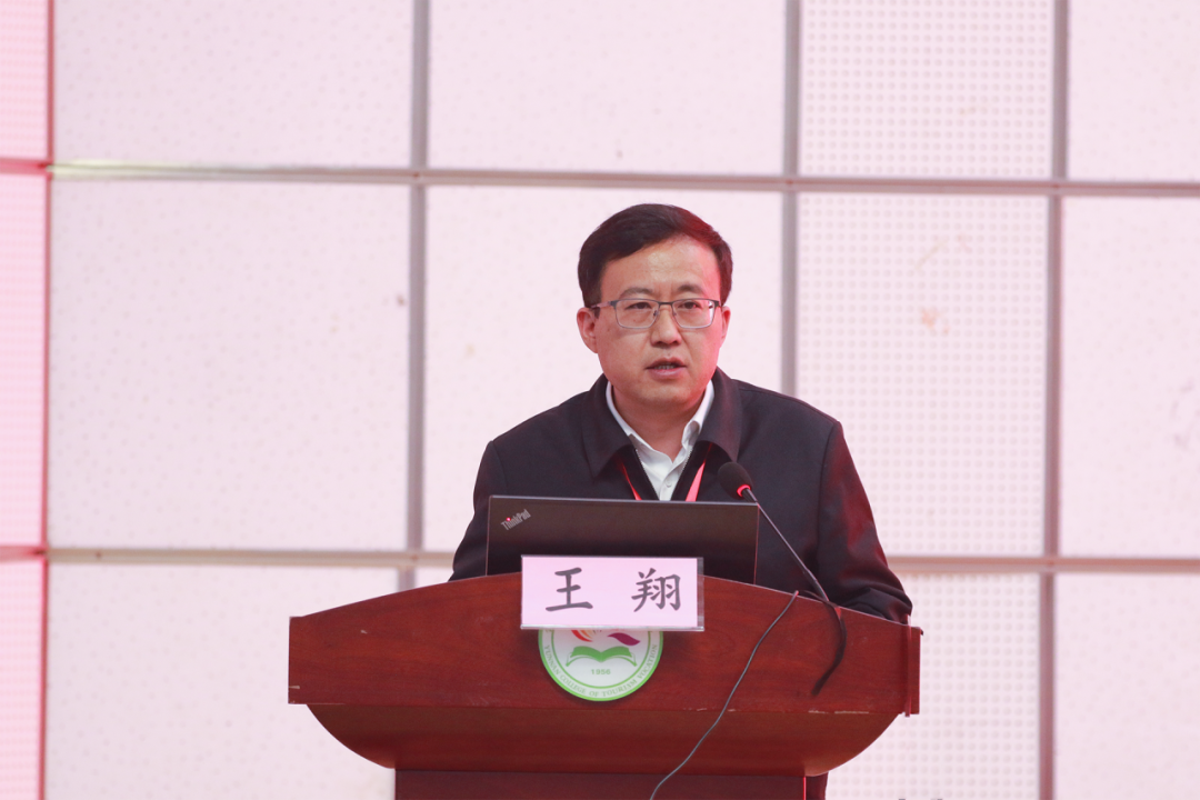 党委书记王翔作《携手同心担使命 唯实拓新向未来》的讲话。他代表学院党委向会议的顺利召开表示热烈祝贺!向各位代表以及为学院建设发展付出辛勤努力的全体教职员工表示衷心的感谢!
