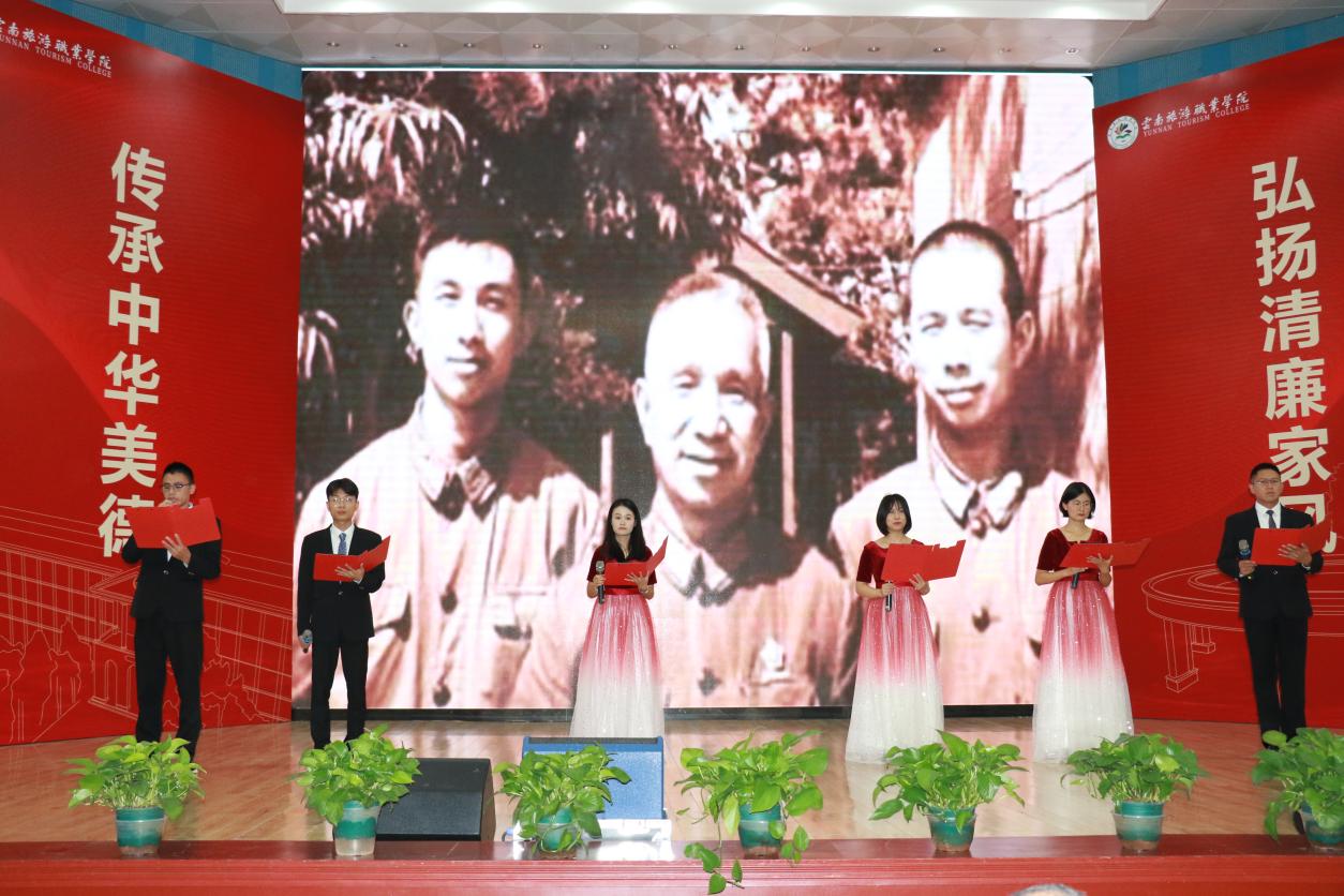 为认真贯彻落实习近平总书记关于党风廉政建设和家庭家教家风建设的重要论述精神,进一步弘扬中华民族传统文化及传统家风家训,以良好家风助推“五清旅院”建设。10月18日下午,学院党委宣传部、工会、妇联、团委、关工委联合举办“诵涵养新时代好家风”暨第二届教职工红色家风朗诵比赛,13个工会小组教职员工,纷纷以团队形式诵读了经典红色家风故事,弘扬了清风正气,大家在共同参与中创新并营造了浓浓的教职工政治理论学习良好氛围。