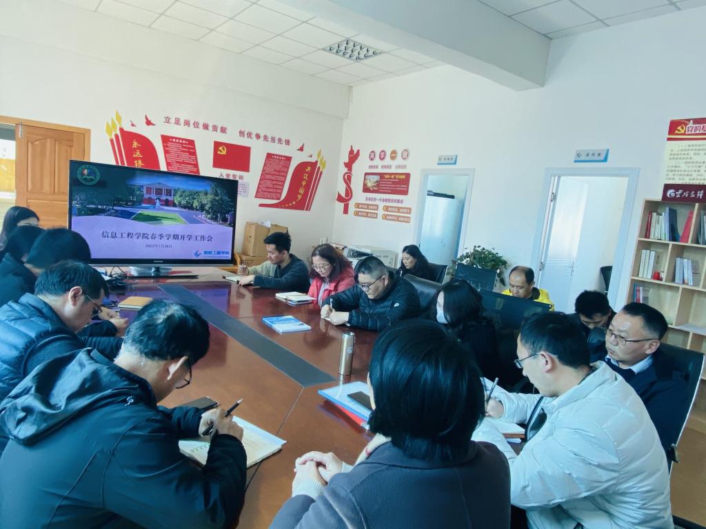 2月28日下午,信息工程学院在综合楼413会议室召开2022年春季学期开学工作会,杨红英副院长到会指导新学期工作,信息工程学院全体教职工参会,会议安排部署学校春季学期常规工作和疫情防控相关工作。
