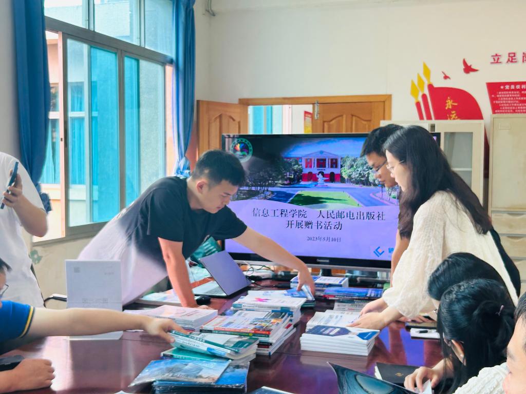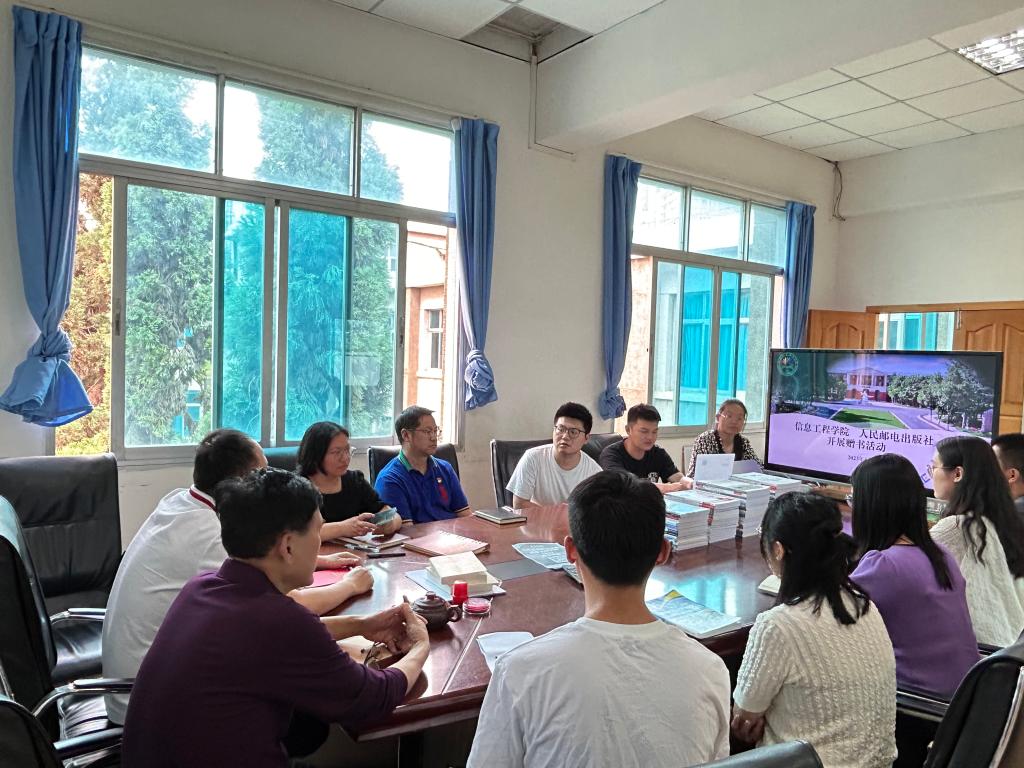 为深入推进落实“我为师生办实事”,5月10日下午信息工程学院联合人民邮电出版社在学院综合楼413举办了“信息工程学院专业用书系列展”赠书活动。人民邮电出版社编辑李志伟,信息工程学院党支部副书记段石林、副院长周健、李帏燕出席活动,信息工程学院全体教师参加。
