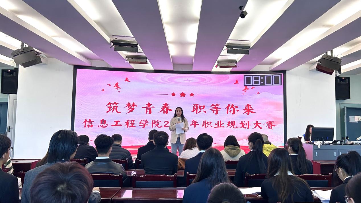 为贯彻落实党中央、国务院关于高校毕业生就业工作的决策部署,落实《国务院关于印发“十四五”就业促进规划的通知》精神,进一步引导大学生树立正确的成才观、就业观和择业观,科学合理规划学业与职业发展,提升就业竞争力,争取在首届全国大学生职业规划大赛中取得成绩打下坚实的基础,11月22日,信息工程学院开展2023年职业规划大赛院级决赛。
