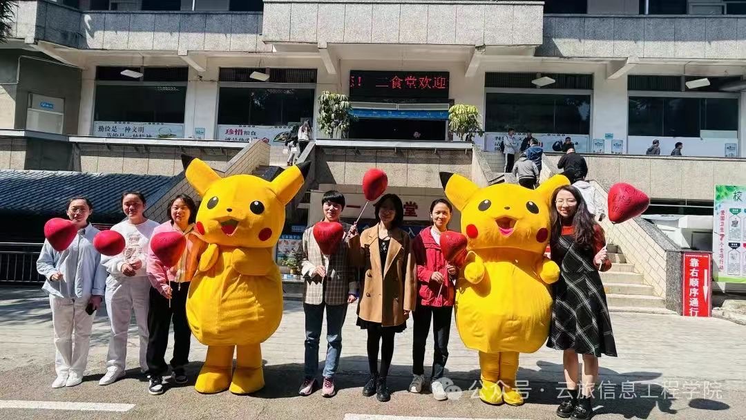 为庆祝“三八”国际妇女节,丰富全校女大学生的校园生活,倡导积极向上、关爱自我、追求卓越的精神风貌,信息工程学院于3月8日在校本部和高新实训基地同步举行了一场独特而温馨的“三八”国际妇女节主题活动——“拥抱皮卡丘,领取祝福气球”。