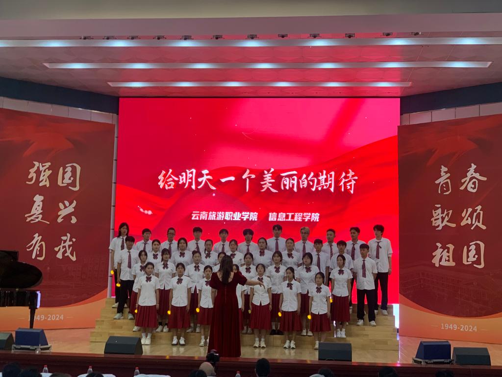比赛现场气氛热烈,各二级学院的参赛队伍都精神饱满,歌声嘹亮。信息工程学院的参赛同学身着整齐的服装,以昂扬的姿态登上舞台。他们用深情的歌声,演绎着对祖国的赞美与热爱。每一个音符都仿佛在诉说着祖国的伟大历程,每一句歌词都饱含着对祖国未来的美好憧憬。