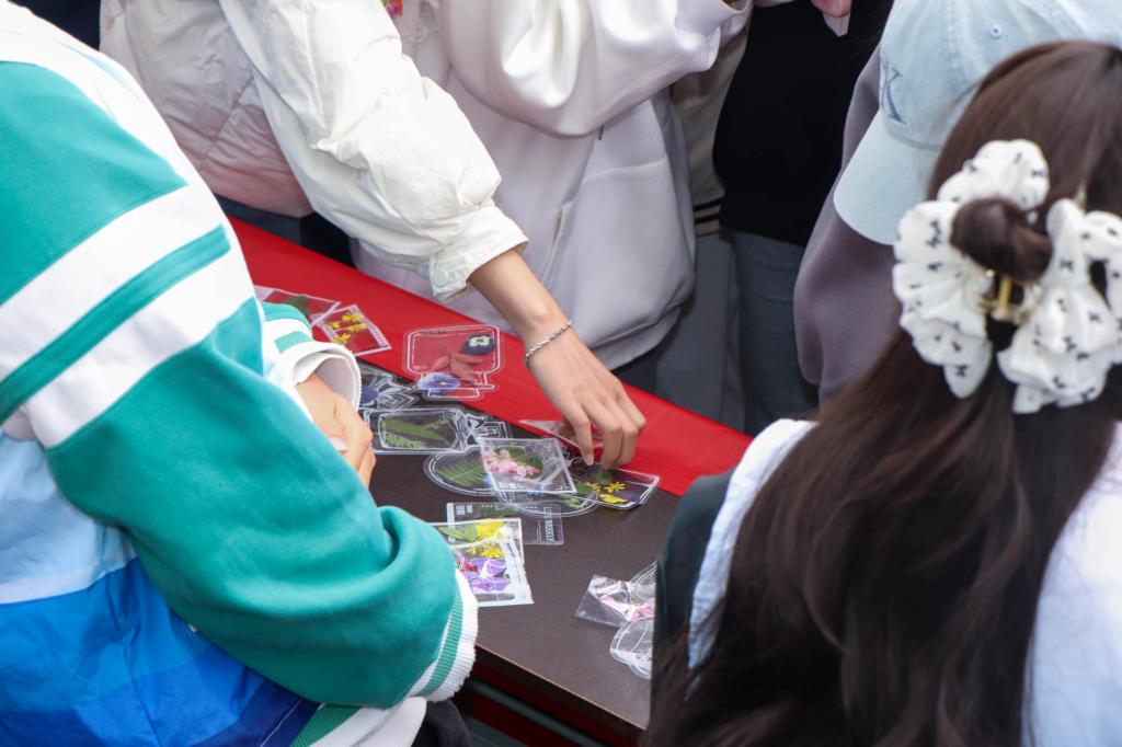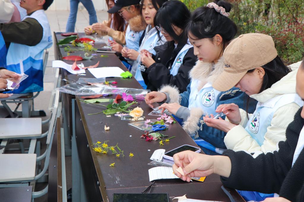 干花书签制作工坊区域,现场设置了工作台,摆放各类干花材料。团总支与学生会提前制作的精美书签,为参与者提供了灵感。大家充分发挥自己的创意,将干花巧妙组合,制作出独一无二的干花书签。同学们表示:“制作书签的过程不仅有趣,还能让自己在忙碌的学习生活中慢下来,享受手工创作的乐趣。”