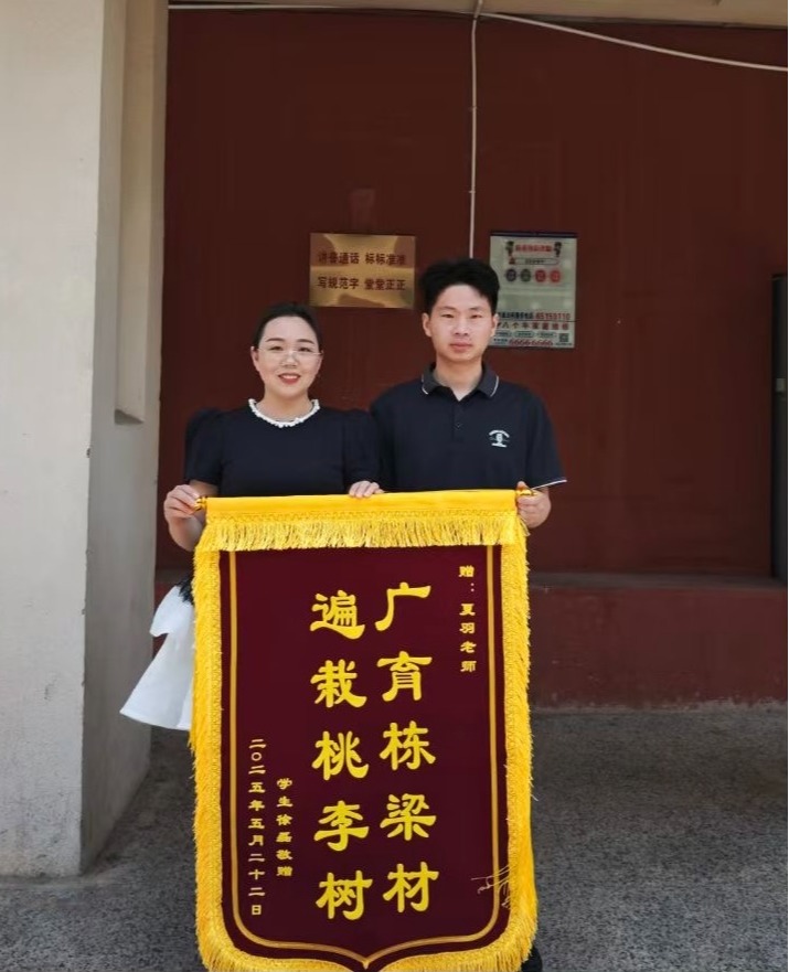在校期间,徐磊同学表现优异,连续两年荣获国家励志奖学金,作为班长带领班级积极进取。他对学院党支部副书记段石林老师、班主任刘东老师、夏羽老师表达了深切的感激之情。徐磊同学衷心感谢学院的培养与关怀,学院严谨治学、资源丰富且重视学生全面发展,为他搭建了广阔的平台。他还特别感谢段石林老师,段老师始终关心学生成长,在思想引领和学业规划上给予支持,让他倍感温暖。刘东老师在班级管理工作中恪尽职守、倾注心血,为班级营造了积极向上、团结奋进的学习和生活氛围。他也十分感激夏羽老师在组织引导方面给予的谆谆教诲,使其在学业和个人成长上受益良多。为表达对学院以及各位老师的感激之情,徐磊同学敬赠锦旗,以表赞扬与致谢。