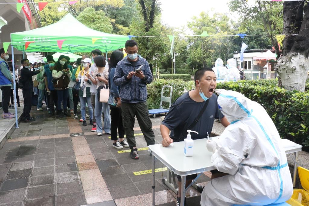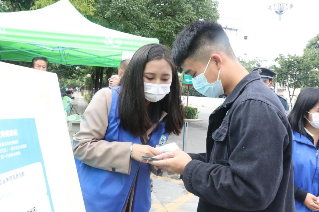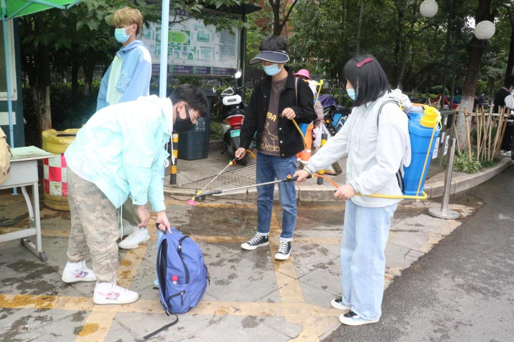 当天下午3点10分,疫情防控应急演练活动分别在龙泉路校区、高新教学实训基地、龙头街教学实训基地三个校区同时有序展开。在高新教学实训基地演练现场,随着副校长杨红英宣布演练正式开始,学生们排队依次进入校园,前后间隔一米,全程佩戴口罩,经行李消毒,扫场所码、出示48小时内阴性核酸检测证明,体温检测无异常后进入校园。如遇体温异常的学生将带至临时处置点,进一步核实有关信息,如复测体温异常学生,并经询问有涉疫风险,迅速启动应急处置程序,同时上报有关部门,严格迅速按照处置流程将发热学生转移至定点隔离,消毒组对现场环境彻底消杀。