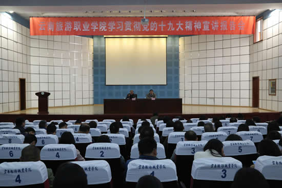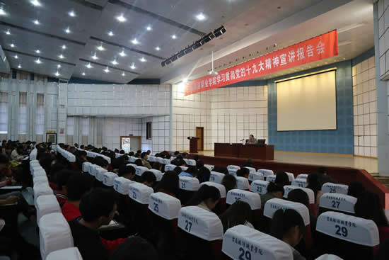 2017年11月29日下午16时,bevictor伟德国际1946官网在学院报告厅举行了“学习贯彻党的十九大精神宣讲报告会”。学院全体教职工、学院第30期党校培训班全体学员、部分学生干部和离退党支部支委、党员共400余人参会,会议由学院党委书记、院长张京龙同志主持。本次宣讲报告会邀请了“党的十九大精神云南省教育系统宣讲团”成员、西南林业大学党委副书记刘沧山同志到校,为伟德师生做宣讲。本次宣讲主题鲜明,刘沧山同志联系实际、深入浅出的宣讲受到了全体师生的欢迎。伟德年轻师生在听完宣讲后纷纷表示:要将“青春梦”融入“中国梦”,不负伟大时代、不负青春年华。