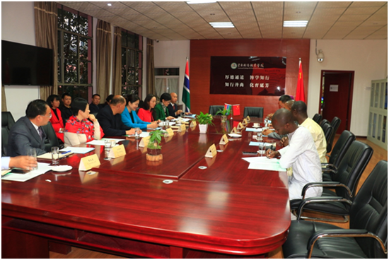 仪式上,文淑琼副主任首先对冈比亚共和国的来宾表示了诚挚的欢迎,她表示:冈比亚国家与中国在经济、文化、科技、教育等方面一直保持着良好的双边关系。贾沃先生一行此次参观bevictor伟德国际1946官网,表达了冈比亚国家与中方在旅游、教育等方面进一步探讨双边交流与合作的美好愿望。我们热忱希望,希望通过双边人才培养互送、优质资源共享,共同促进双方旅游类高职院校的建设和发展。