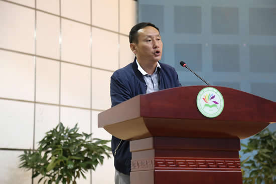 学院党委书记、院长张京龙同志在思想政治工作上做报告。