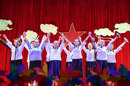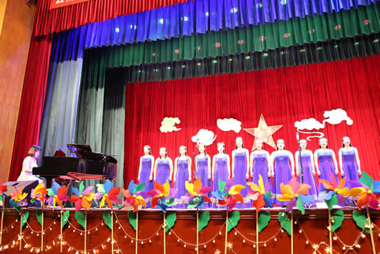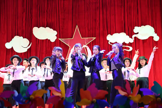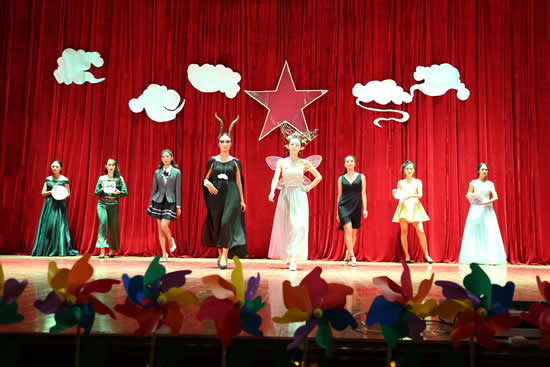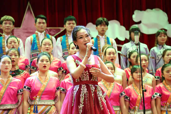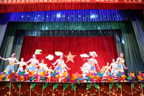 《党的颂歌》、《梦想之旅》、《少年中国说》……大学生艺术团和学院教师们精心准备的13个节目,惊艳全场,展现了职业教育风采:《心的怀想》、《小巷》两首原创歌曲就是学院文化艺术学院院长郭寰作词,教师王云峰作曲;而《陶冶》中,模特身上佩戴的所有陶瓷饰物,则全部出自文化艺术学院邓洁煌老师之手。