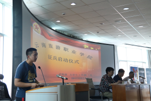 征兵启动仪式上,全体人员观看了《2017年大学生征兵宣传片》。大学生工作部部长、武装部部长孟绍存传达了全国和全省大学生征兵网络视频会议的精神。学院退伍复学同学李博文上台发言,同大学生一同分享了自己入伍从军的成长历程。学院武装部副部长就学院2017年大学生征兵工作进行了安排,同时就大学生入伍的相关优惠政策进行解答。