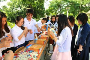 志愿者们为参观者们准备了精美书签和学院简介材料。