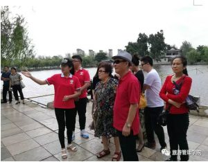 伟德旅游管理学院师生为中外游客进行义务景点讲解。