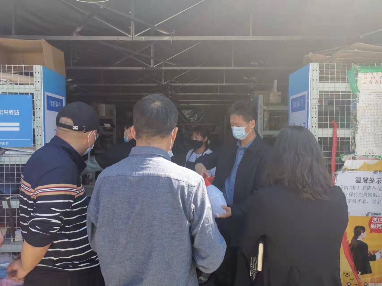 在快递分发点,检查组重点检查现场消毒情况,要求快递分发点做好环境消毒的同时,还要加强快递件消毒,做到每个快递件消毒后再上架,科学规范配比消毒制剂,建立健全消毒台账记录。在隔离区,检查组检查了防疫设施设备的配备情况及值班情况,蔡校长现场要求隔离区要按照相关标准,做好“三区两通道”的布置和标识标牌完善工作,值班人员做好相关台账跟踪记录,务必将工作落细落实。