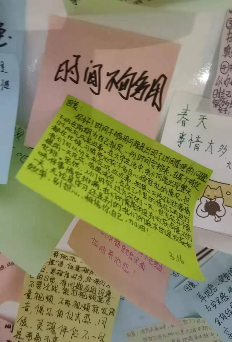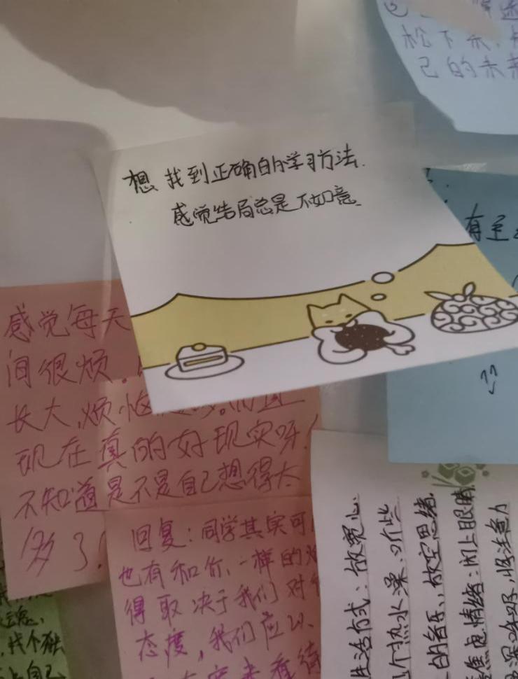 “这是一个十分有意义的活动,看到自己写的问题被人回复了,我感到很开心。”来自资源工程学院的周绍然同学面对采访时说到。来自外语学院21级的林繁同学认为学校应该多多开展此类活动,他认为“有些腼腆的同学不擅长表达,但他们可以把自己的心事张贴在墙上,也能表达自己的情绪。”