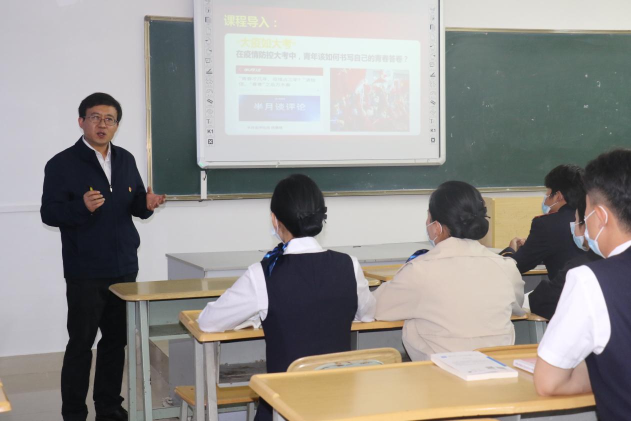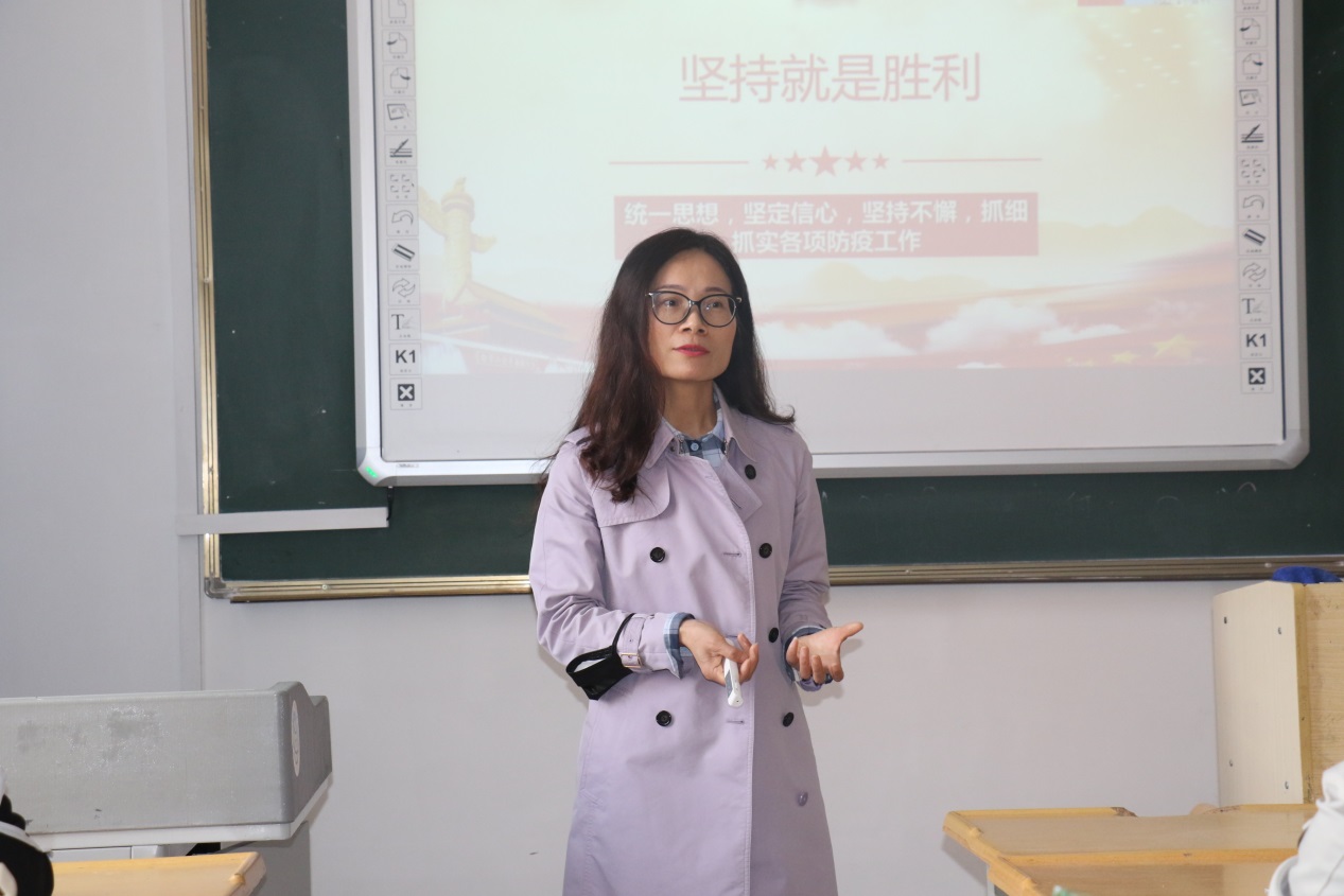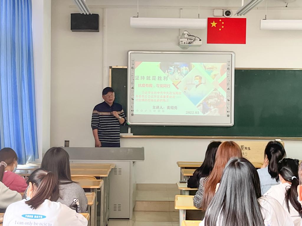 “在疫情防控大考中,青年该如何书写自己的青春答卷?”是本次抗“疫”思政课的出发点和落脚点。课堂上,校领导及思政课教师以“艰难与坚持”“自由与选择”“责任与荣耀”三个部分,详细分析当前疫情防控的国内和国际形势背景,深入讲好以习近平同志为核心的党中央在疫情防控人民战争、总体战、阻击战中的坚强领导以及人民至上、生命至上的担当作为;结合我国疫情防控取得的决定性成果,深入讲好中国共产党的领导和中国特色社会主义制度所彰显的显著优势;通过讲述在疫情防控一线“强国一代”急速蜕变成长涌现出的生动事迹,引导学生胸怀“国之大者”,以大局为重,将个人前途命运与党和国家、人民事业发展所需融为一体,争做个人健康“守护者”、青春榜样“引领者”、理想信念“笃行者”,让青春在党和人民最需要的地方绽放绚丽之花。