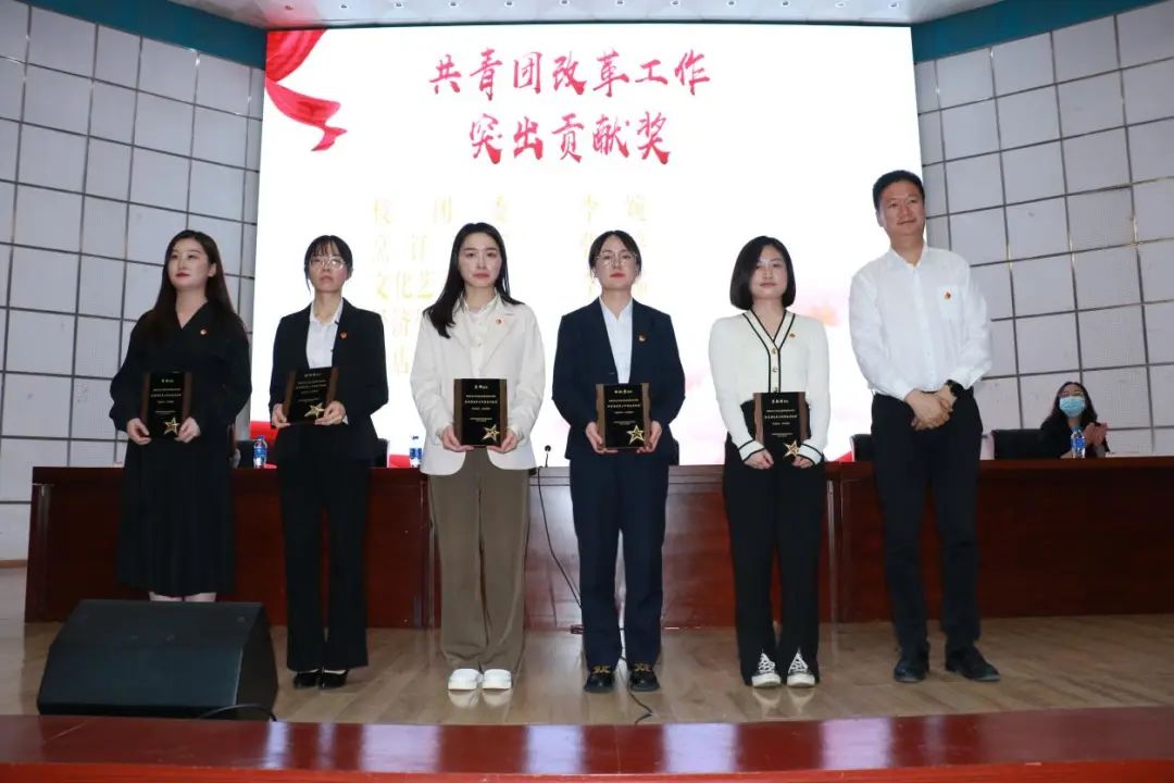 为迎接党的二十大胜利召开,庆祝中国共产主义青年团成立100周年,弘扬“五四”精神,增强团的凝聚力,5月13日中午,“喜迎二十大,永远跟党走,奋进新征程”学校五四表彰大会在报告厅顺利举行。校领导,相关部门负责人,二级学院党支部书记、副书记、团总支书记以及荣获2021年度共青团工作各项荣誉的先进集体和优秀个人代表出席本次大会。会议由校团委副书记陈怡主持。