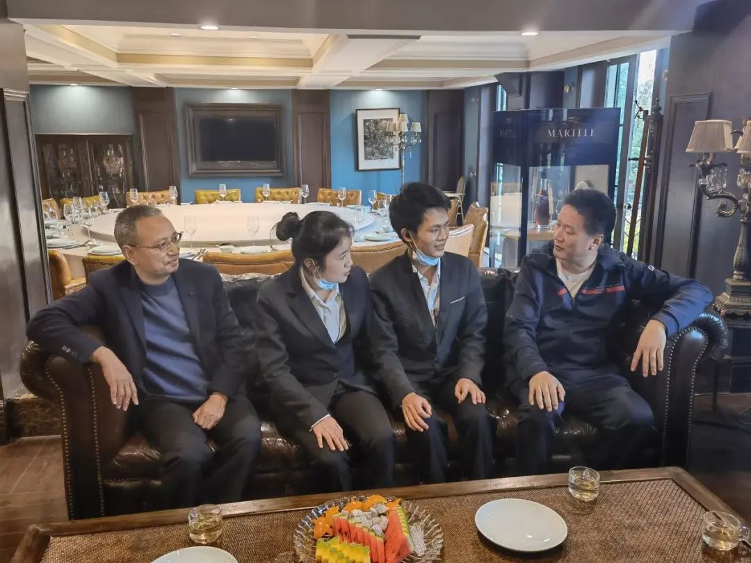 实地考察了毕业生在企业的工作环境、工作情况后,蔡冰院长和茴香熙楼总经理杨志军一起与毕业生进行了座谈。蔡冰院长亲切表达了对同学们的问候,热情与同学们进行了交流,仔细了解他们学习、工作、生活等情况,并对同学们提出了殷殷嘱托,一是要珍惜工作岗位,学以致用,稳扎稳打,在工作实战及服务企业中,练就过硬本领,拓展综合能力,更好实现技能服务社会和个人发展;二是要关心母校发展,常回母校看看,将自己的成功经验分享给学弟学妹,带动他们努力学习、锻炼技能;三是欢迎同学们对学校教育教学提出宝贵意见和建议。同学们纷纷表示将不负学校培养和企业信任,努力工作,不断取得职业发展新进步。