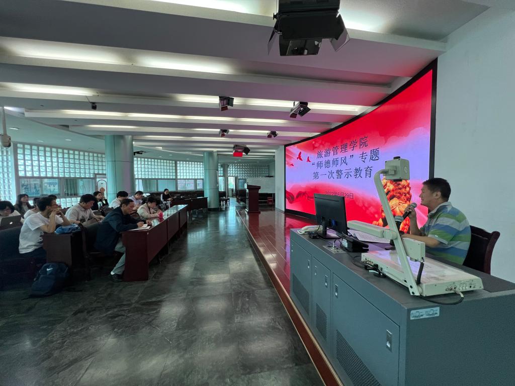 校长蔡冰参加旅游管理学院的警示教育学习。他指出,师德师风是评价教师队伍素质的第一标准,作为人民教师,要始终坚持中国特色社会主义理想信念和终身学习不断改革创新意识,师德师风建设不是一项短暂的任务或者活动,而是应该成为教师职业生涯中的一个常态,教师素质的高低直接决定着培养人才素质高低,教师的素质直接影响着学生的学风和学校的校风,我们要树立以学生为主体的服务意识,创造出尊重、信任、宽容、友爱的师生关系。
