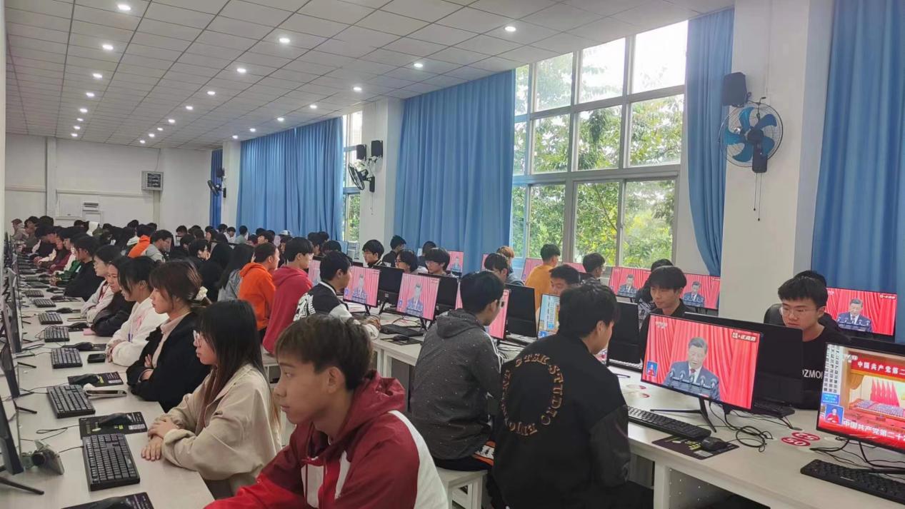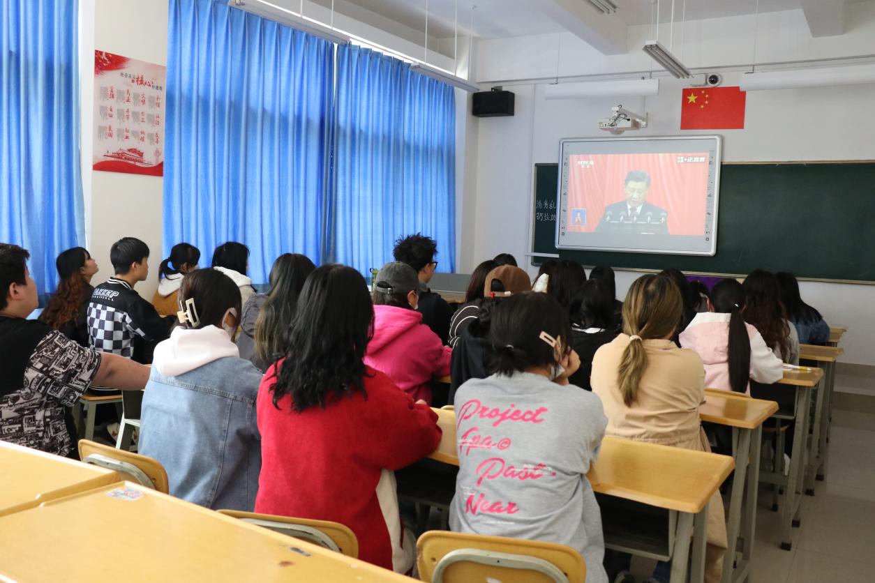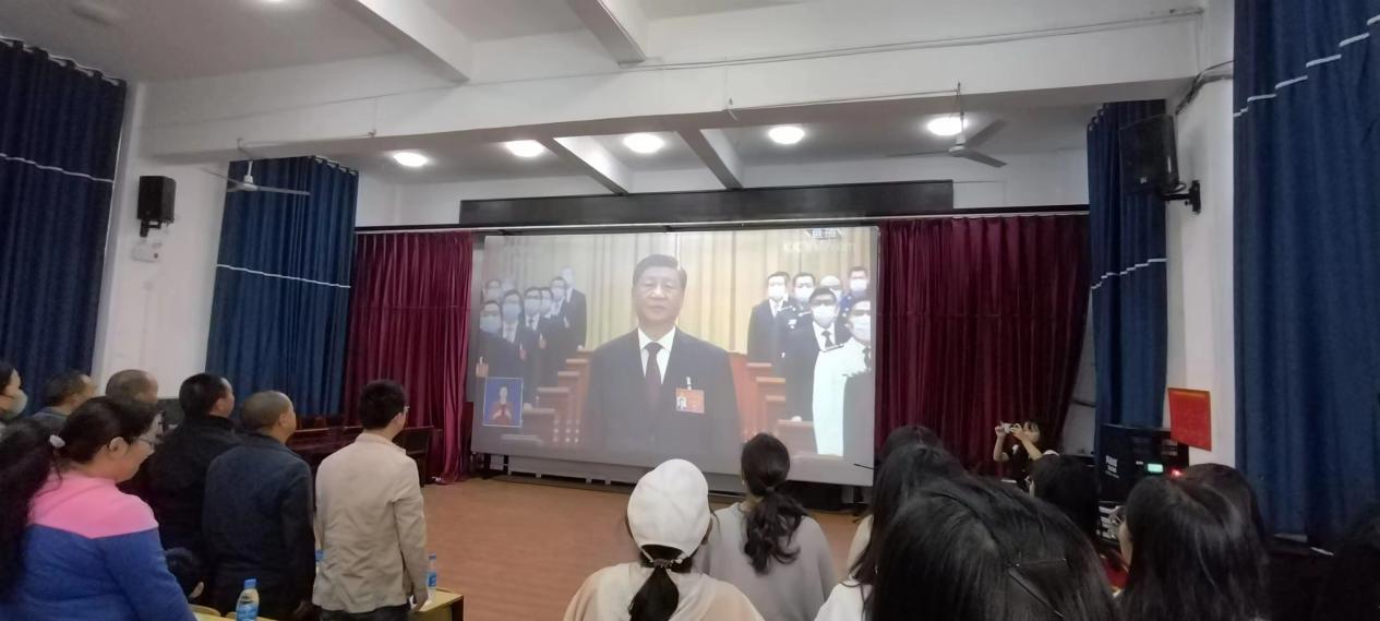 学校党委书记王翔,党委副书记、校长蔡冰以及全体党委委员,中层干部,全校教职员工和学生代表们一起,在报告厅集中观看了党的二十大开幕会,仔细聆听习近平总书记所作的工作报告,认真学习报告中提出的一系列新观点、新论断、新思想、新战略、新要求。
