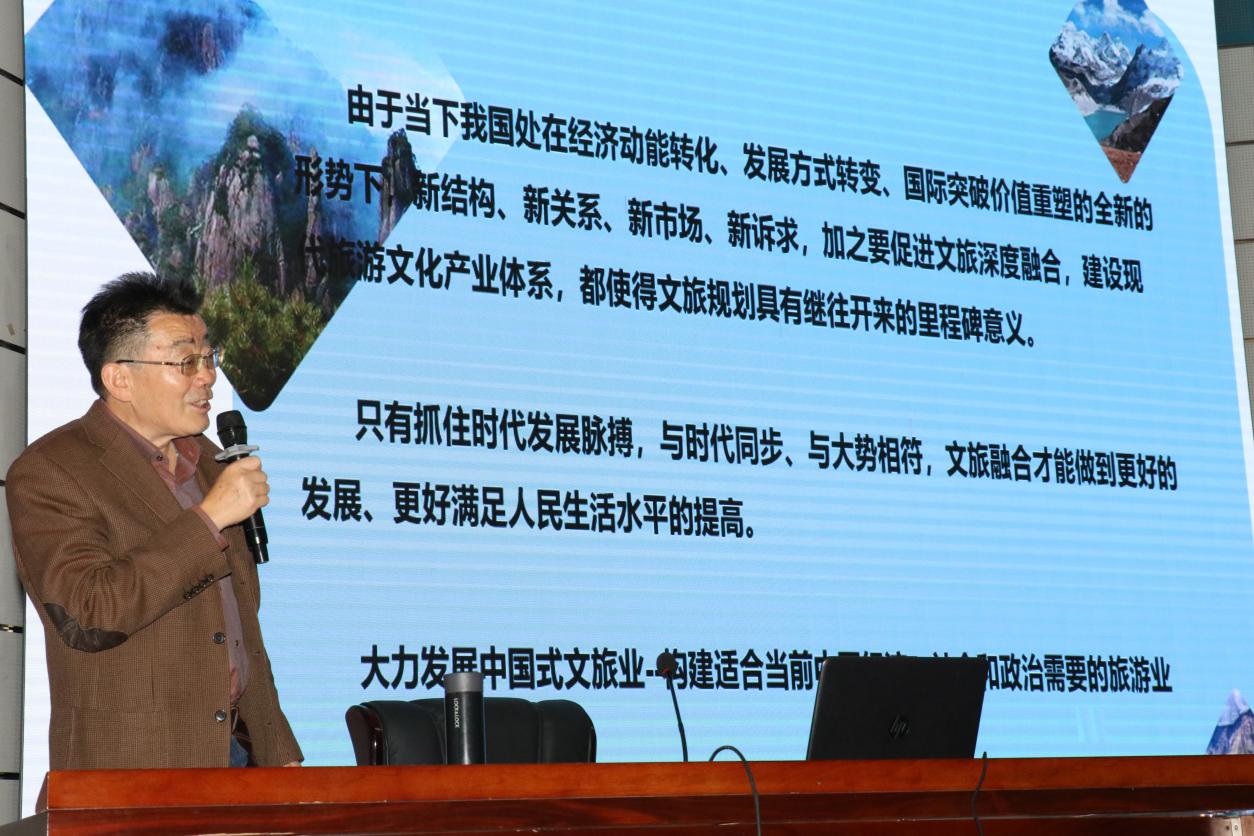 讲座中,明庆忠教授结合自己工作,从“十四五”文化和旅游规划和全域旅游两个背景出发,将两者的使命结合起来,从“文旅规划面临的新问题”“文旅规划面临的新战略”“十四五”文旅规划及实现基本策略与途径等5个方面,通过大量具体案例,围绕数字中国、高质量发展、文旅IP创新、研学类文旅、夜间旅游等关键词,从文化和旅游规划与全域旅游发展的关系分析、新导向与目标、主要任务与方略、方法与途径等多个方面进行了深入讲解。近两小时的讲座内容详实,内涵丰富。