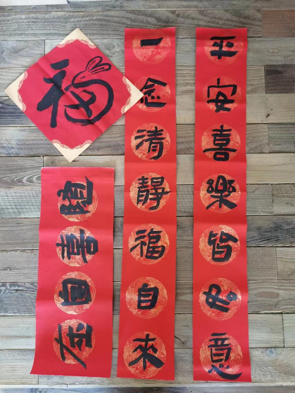 旅游管理学院 旅管2021班 魏月瑞:这幅《兔年大吉》希望新的一年大家的生活就像画一样多姿多彩,祝愿老师和同学们春光无限,岁岁平安,欢天喜地,百事顺心,笑口常开,阖家欢乐,生活美满 ,兔年大吉!