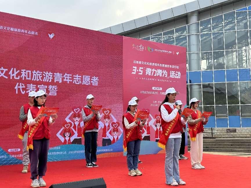 活动中,云旅小蓝光荣地作为云南文化和旅游青年志愿者代表与广大文旅行业的代表集体宣誓。