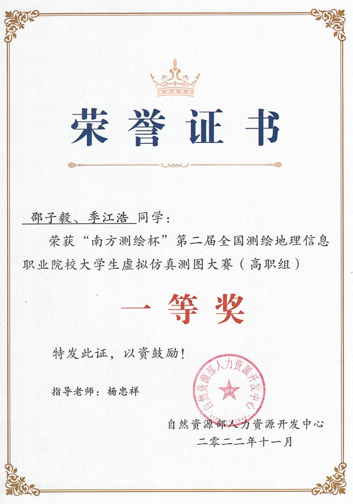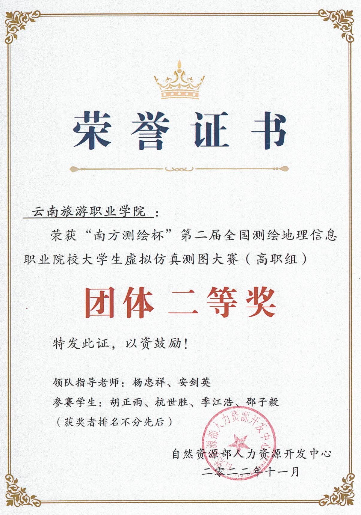 近日,自然资源部人力资源开发中心《关于公布“南方测绘杯”第二届全国测绘地理信息职业院校大学生虚拟仿真测图大赛获奖结果的通知》公布,伟德资源工程学院派出参赛的两支队伍4名同学,经过激烈角逐,分别获得一等奖和二等奖,学院荣获团体二等奖的好成绩。