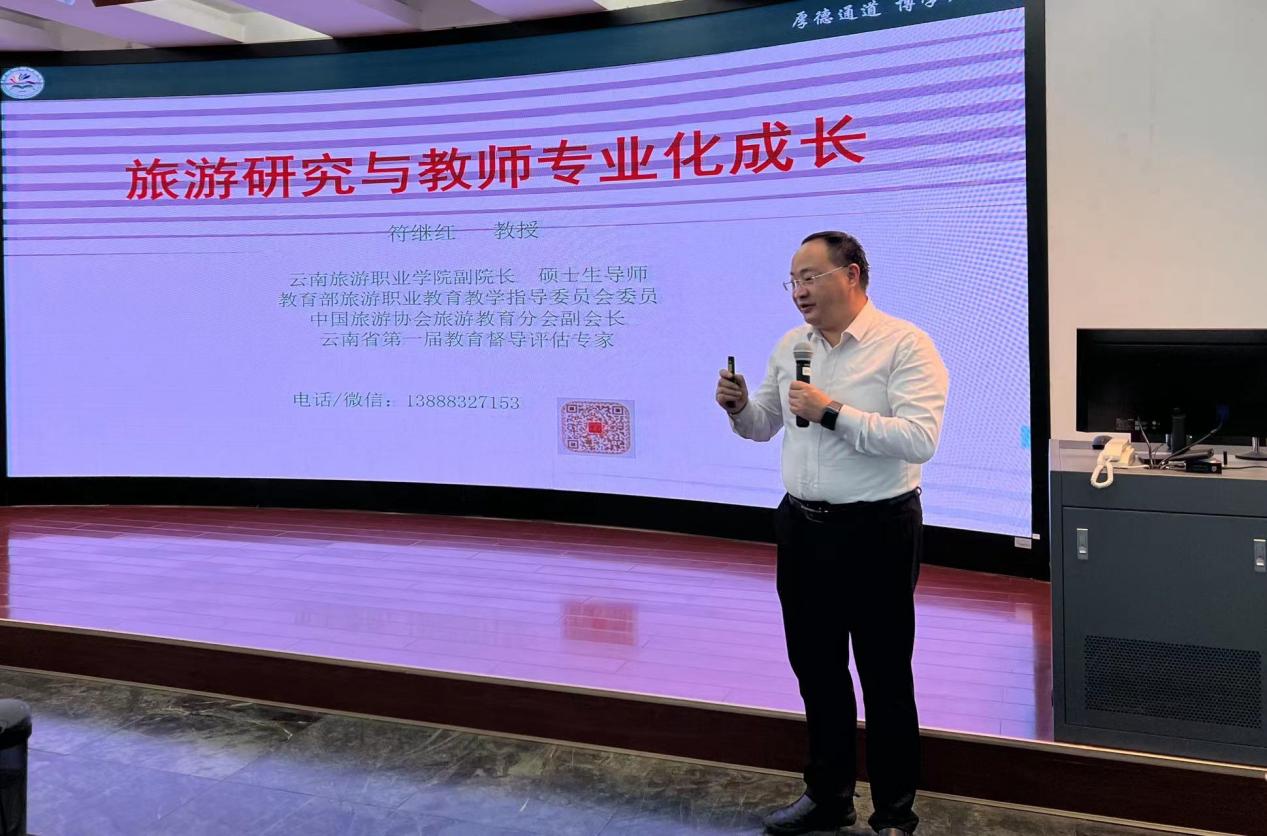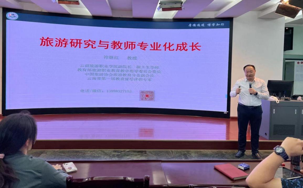 在接下来的学术训练环节,学院副院长符继红教授指出,学术训练是教育技术学专业的一门实践课程,着重提升科研工作者进行科学研究的基本素质,培养发现问题、提出问题并设法解决问题的能力。并从以下几个方面对青年教师进行了专题指导。首先,我们应该干什么?青年教师要担负新时代高职教育的使命,结合未来一段时期学校发展的目标和方向,认识到科研工作的重要性和必要性,明确科研工作应该“干什么”,“如何干”。其次,我们该往哪里去?青年教师要“借天时(主动适应国家政策)、占地利(根植产业发展)、谋人和(强化内涵建设)”。第三,教师的自我成长。青年教师要加强思想政治学习,进一步激发内生动力,投身于科研事业,从自我成长的角度出发,明确教师专业化发展的路径和要求。最后,符继红教授以自己完成的国家社科基金研究项目《规制经济学视角的旅游“零负团费”形成机理、影响及治理研究》为例,分享了自己在旅游研究领域的学术心得,对该项目的研究背景、研究对象和任务、研究内容和范围、研究方式和方法、研究成果进行了一次逻辑严谨、内容清晰的全面展示和梳理,以项目传授经验,以案例打通思路,取得了良好的训练效果。
