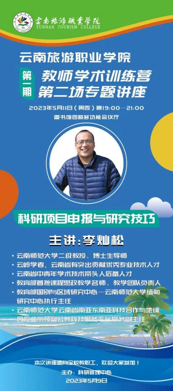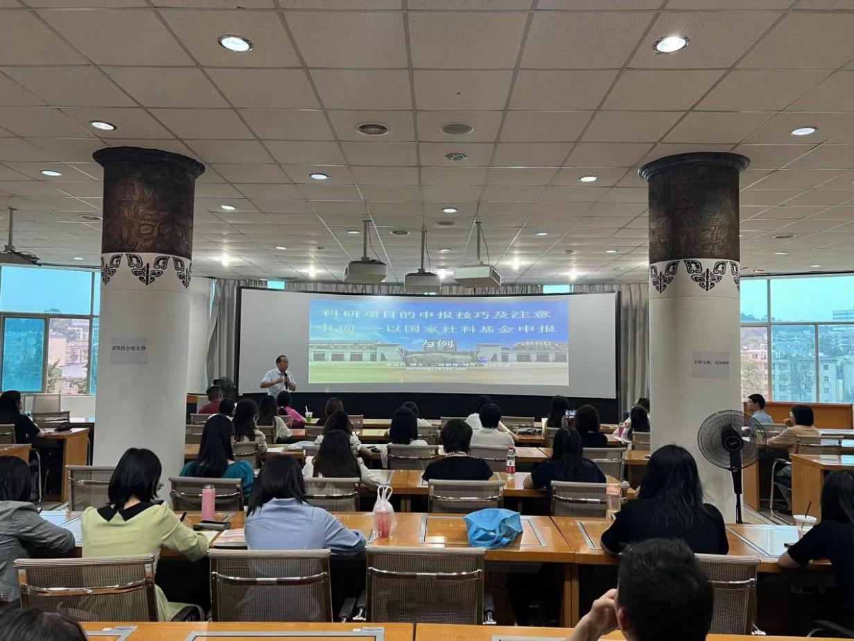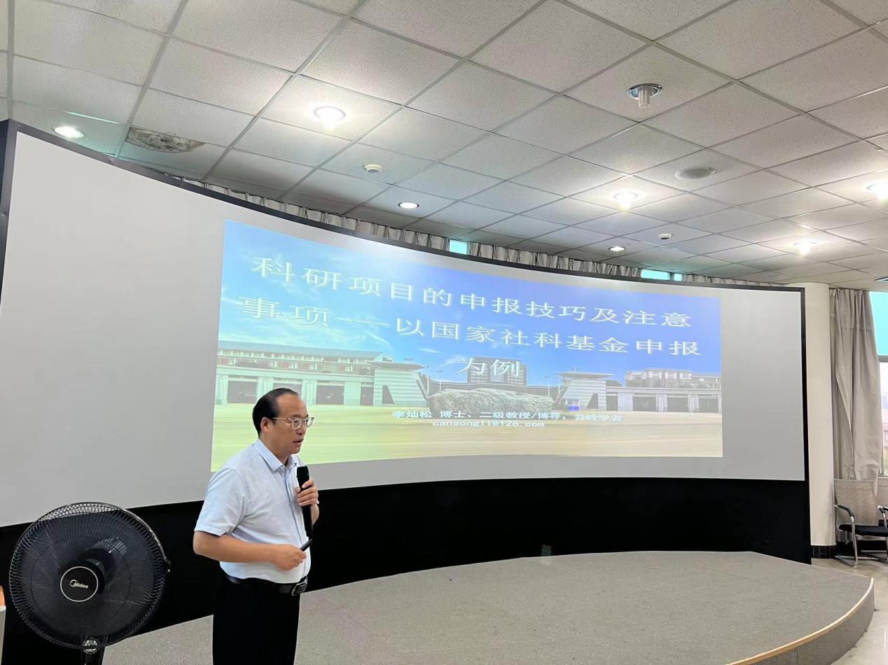本期讲座的特邀专家是云南师范大学二级教授、博士生导师李灿松,长期从事人文地理学的教学科研工作。本次讲座的主题是“科研项目的申报技巧及注意事项——以国家社科基金申报为例”。李灿松教授指出,申报国家社科基金项目要坚持问题导向,服务国家战略;并结合自己多年来成功申报国家社科基金项目的经验,从项目选题依据(研究综述撰写、研究价值)、研究内容(研究对象、框架思路、重点难点、主要目标、研究计划及可行性)、创新之处(学术思想、学术观点、研究方法的特色和创新)、研究基础、经费预算等方面,全方位梳理了国家社科基金项目申报书的撰写要求和注意事项,无保留地分享了有关申报技巧;并以不同级别项目的申报为例,鼓励教师学员从校级科研项目开始积累经验,逐渐提高到云南省教育厅基金项目、云南省哲学社会科学基金项目,最后挑战国家社科基金项目。
