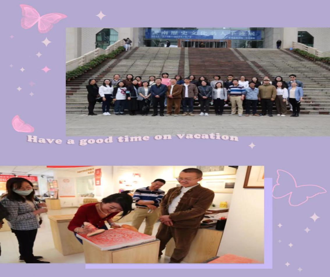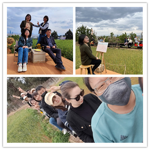 文化艺术学院工会小组到云南省图书馆古籍修复保护传拓研习馆开展“拓印红色记忆 发扬巾帼风采”活动;经济管理学院工会小组、教务工会小组去守望山城市露营地爬山、喂小动物、看日落;酒店管理学院工会小组到宜良樱花谷赏景、品特色小吃;烹饪学院工会小组春游当天恰逢晋宁区昆阳街举办“渠东海埂三月三文化旅游节”,教职工们共庆千人节日、感受民俗文化;外语学院工会小组、马克思主义学院工会小组结合主题党日活动,在金殿开展了“廉洁润初心 铸魂担使命”廉洁文化教育活动和“初心不忘,使命在肩,奋斗不止”主题活动;旅游管理学院工会小组到沉香雅轩·乐活庄园开展了主题是“我运动、我健康”活动,赏花观景,放松身心;党群工会小组、行政工会小组、学生工作工会小组分别到教场中路参加“昆明第五届蓝花楹文化艺术节”、邂逅一次蓝紫色浪漫,品味“有一种叫云南的生活”。