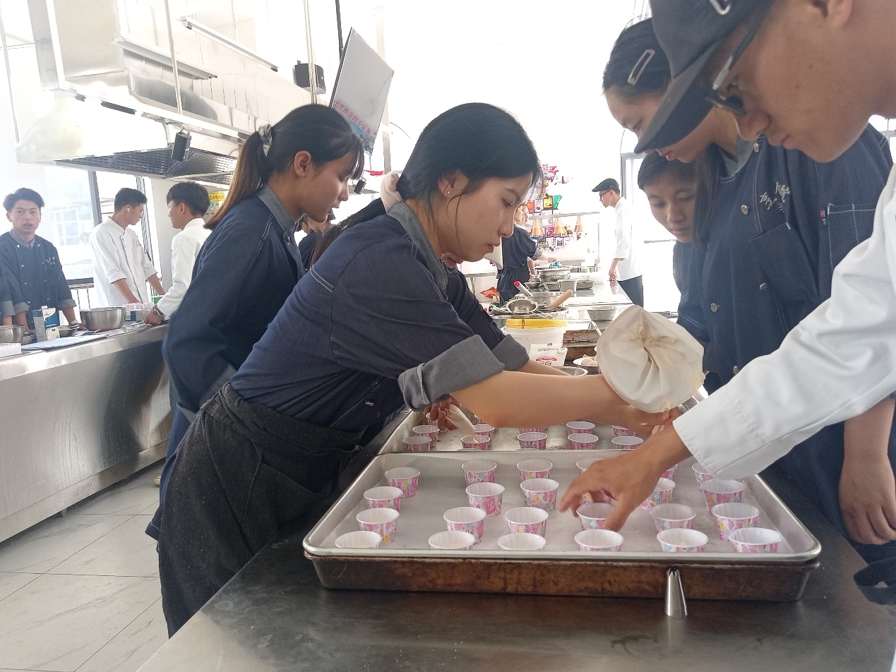 从5月8日开始,烹饪学院正式开启为期两周的职业教育活动周,活动主题为“烹美食、享美味、展技能”。活动以生产性实训为目标,利用学院烹饪实训室自主制作食品以实物产品形式展现技能成果,并将技能成果进行现场营销的方式开展。教学实习内容包括土豆、烧烤以及凉拌菜、卤菜等13类食品的制作和创新,涉及中西面点工艺、烘焙工艺、烹饪工艺与营养配餐工艺等课程内容,引导同学们将课堂学习到的理论知识应用于实践。