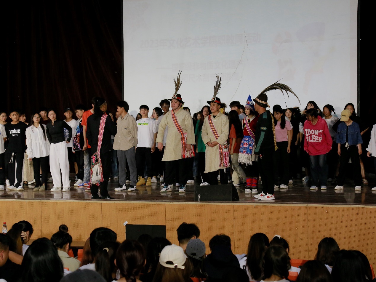 5月17日,“国家级非物质文化遗产傈僳族阿尺木刮专题讲座”在伟德高新教学实训基地举行。国家级非物质文化遗产代表作项目“傈僳族阿尺木刮”的省级传承人李碧清担任主讲老师。李碧清老师向师生展示自己熟练掌握的“阿尺木刮”传统唱腔、唱词,并传授“左倮邓”(舞圆环)等舞段跳法,通过浑厚、有力、粗犷、健美的舞蹈风格向师生们展示了傈僳族人民自强不息、团结奋进的基本精神,孕育出与时代相应的新的创造。