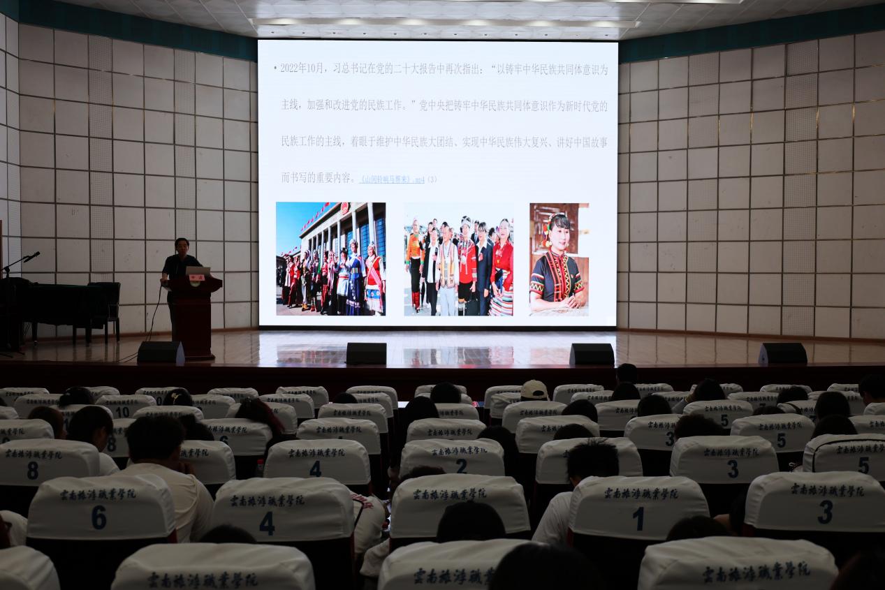 本次张桂梅思政大讲堂由学院党委主办,文化艺术学院协办,这也是我们创新理论学习形式、多措并举办好思政大课的具体实践。学院党委副书记王敏希望现场老师和同学们在以后的学习实践中,要全面树牢正确的国家观、历史观、民族观、文化观、宗教观,增进对伟大祖国、中华民族、中华文化、中国共产党、中国特色社会主义的认同,不断巩固中华民族共同体思想基础,把习近平总书记关于铸牢中华民族共同体意识的各项指示要求学习好、贯彻好、落实好,让民族团结之花扎根在旅院,绽放在旅院。讲座在歌曲《贡献》的歌声中圆满落幕。