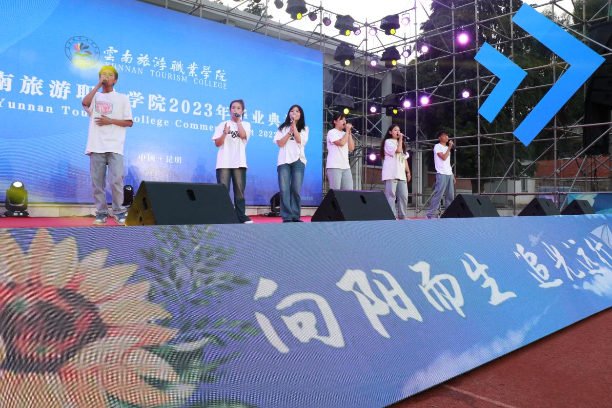 学院学工部(学生处、武装部)和团委特别策划毕业晚会深情送别毕业生,精心准备了氛围感满满的暖场节目《奔跑的,青春》。毕业生共同演绎《My girl》《忘记时间》《海阔天空》《感谢你曾来过》《别怕变老》,一首首歌曲点燃了现场激昂的青春与活力。学院领导,相关职能部门、各二级学院负责人,全体学生辅导员,毕班班主任,各学院教师代表参加典礼并纷纷给毕业生们送上祝福。