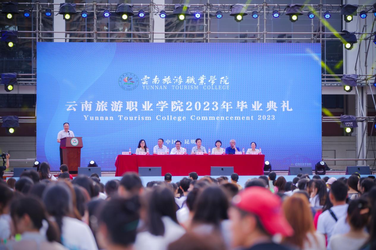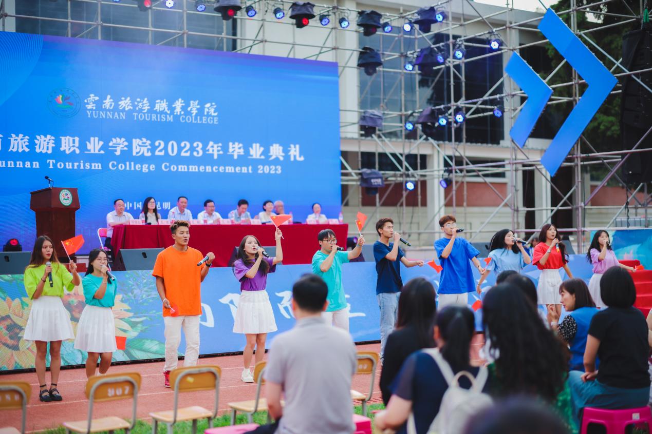 深情寄语,青春奋斗。党委副书记、院长蔡冰在2023届毕业典礼上的讲话,为全体毕业生上“最后一课”。蔡冰深情回忆,在云旅求学的三年,你们见证了历史性飞跃,见证了学院办学质量不断提升,增长了知识才干,锻炼了品格能力、积聚了继续前行的力量,你们成长的每一个瞬间、奋进的每一个步伐都令学院为你们感到欣慰和骄傲。他勉励毕业生们说,同学们正值最美的年华,正逢最好的时代,祖国给予你们追梦的舞台,母校给予你们奋进的力量,希望你们在未来的奋斗道路上,去有梦的地方,在强国之路上坚定理想信念;去有浪的地方,在时代潮头上锤炼过硬本领;去有风的地方,在青山绿水间挥洒热血青春,不断在拼搏奋斗中书写最美的青春华章!蔡冰院长还现场清唱了一段歌典《祝你一路顺风》,表达不舍之情又深深祝福即将奔赴未来的旅院学子。