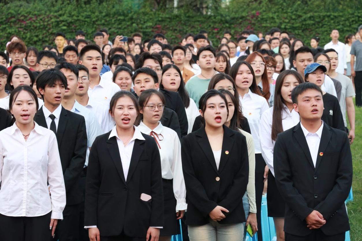 国歌嘹亮,青春激昂。典礼开始前,现场师生共同起身,齐声同唱国歌。当国歌旋律响起,现场不少毕业生早已热泪盈眶。大家表示,在未来的时光中会将“爱国”刻在心中,肩负起青年人的使命与担当,书写奋斗有为的时代华章。