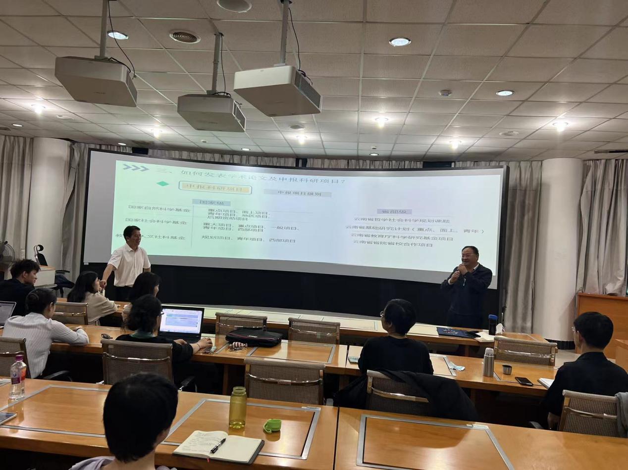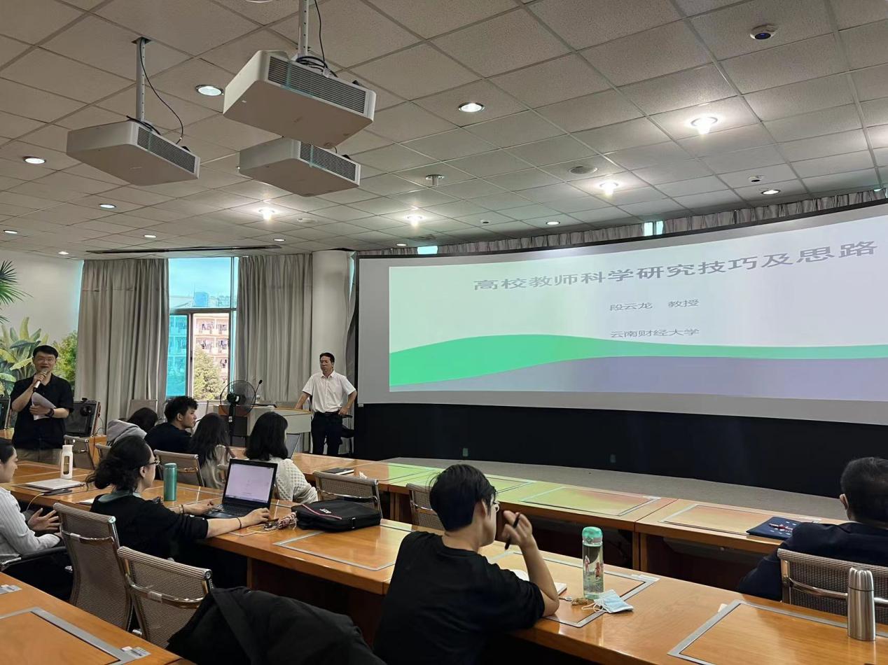 段教授指出,科研工作首先要大量阅读文献资料,并介绍了云南财经大学提升教师学术能力的经验:建立读书班,每周进行学术研讨,交流阅读文献的体会;二级学院院长带头报课题、拿项目;出国学习的教师分享国外学习经验;建设强有力的科研团队,实施“有组织科研”。