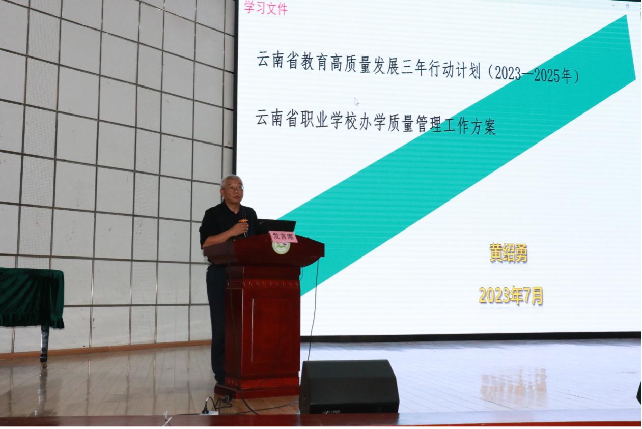 副院长黄绍勇详细领学《云南省教育高质量发展三年行动计划(2023—2025 年)》《云南省职业学校办学质量管理工作方案》并进行工作部署。