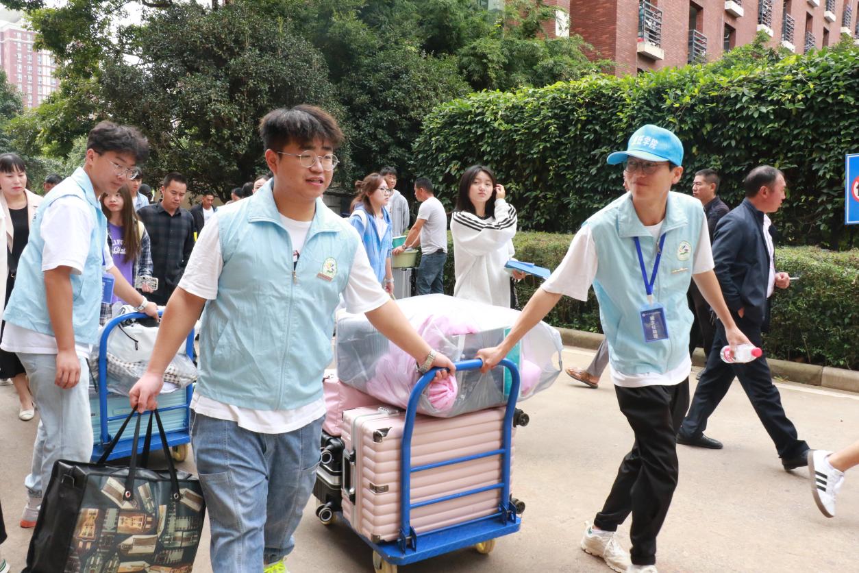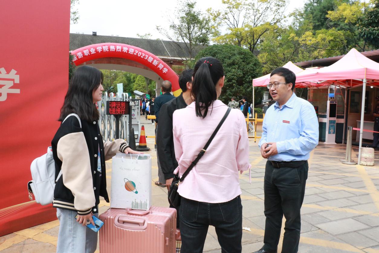 学院党委书记王翔,党委副书记、院长蔡冰以及其他各院领导,分别来到校本部和高新区教学实训基地新生报到现场,与新生及家长亲切交谈,诚挚慰问迎新工作人员。