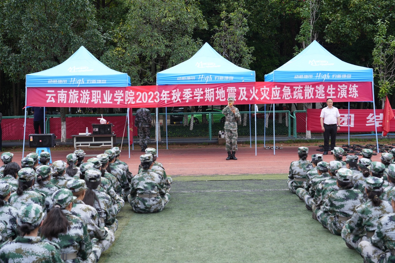 本次演练按军训连队为单位。演练前,由军训总教官统一开展《bevictor伟德国际1946官网2023年秋季学期地震及火灾应急疏散逃生演练实施方案》《地震避险逃生方法》《火灾逃生自救方法》学习培训,熟悉演练方案中的操作流程,掌握自救逃生方法和知识。