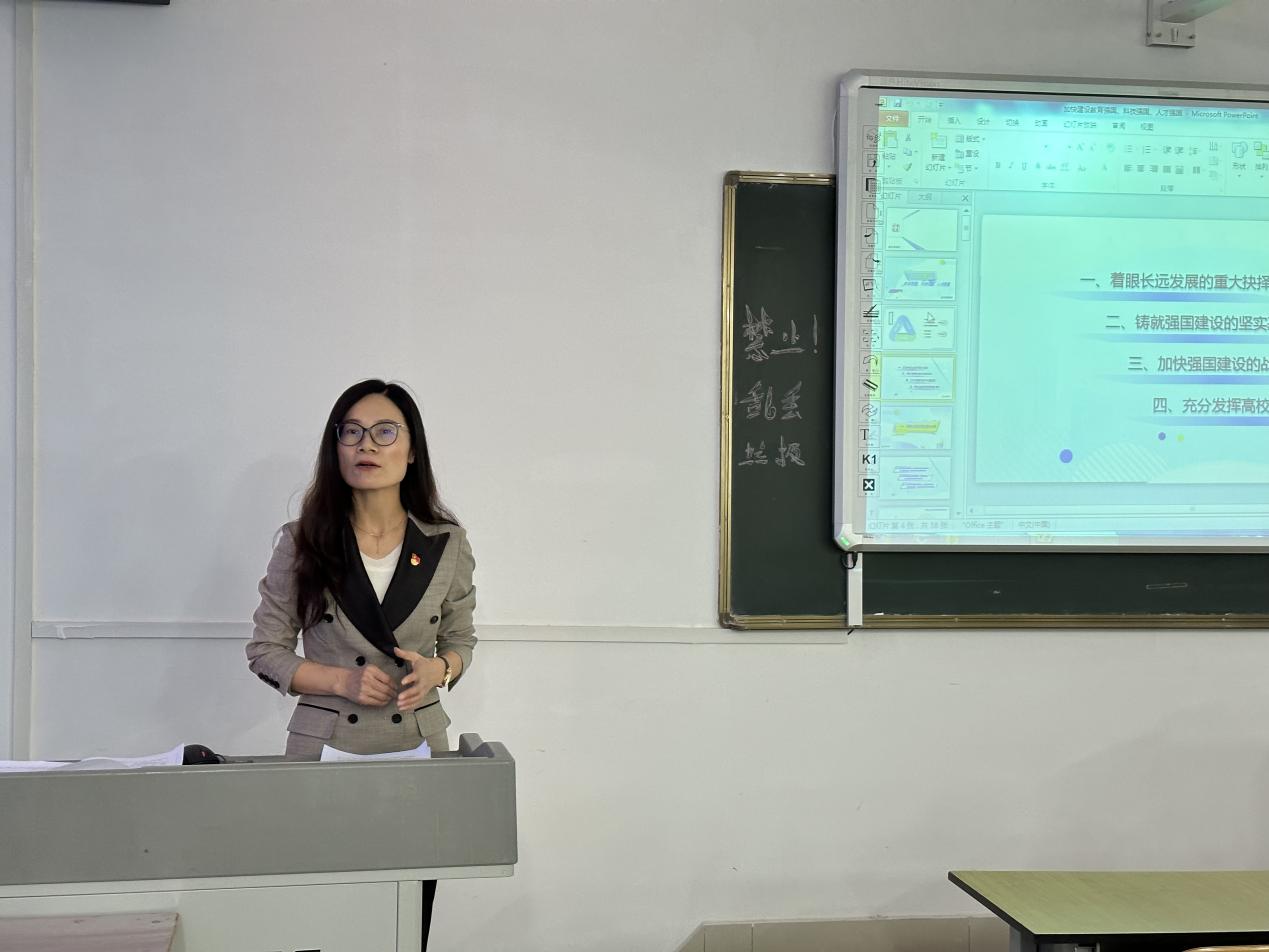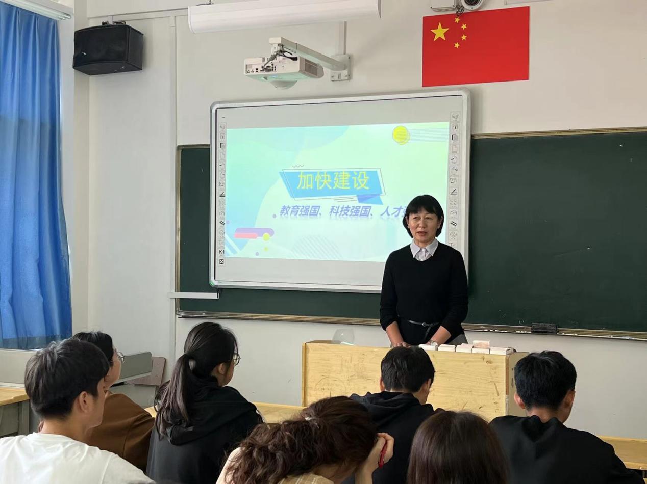 院长蔡冰围绕“着眼长远发展的重大抉择”等四个方面内容,先是从历史维度,向学生们讲解了学校的历史、新校区建设以及办学的优势特色,引导学生知校史、立大志、成大器,树立起对学校以及所学专业的自信;又从现实维度,要求学生坚定理想信念,让学生深刻认识到教育优先发展、科技自立自强、人才引领驱动对全面建设社会主义现代化国家的重要作用和深远影响。