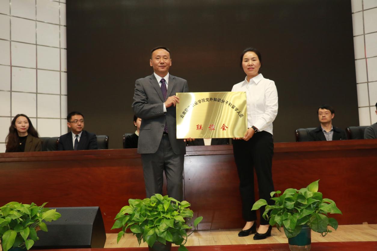 第一届理事会第一次全体会议选举杨银开为联谊会会长、伍乐平为副会长、高飞为秘书长、李想为副秘书长。学院党委副书记王敏为党外知识分子和留学人员联谊会授牌。